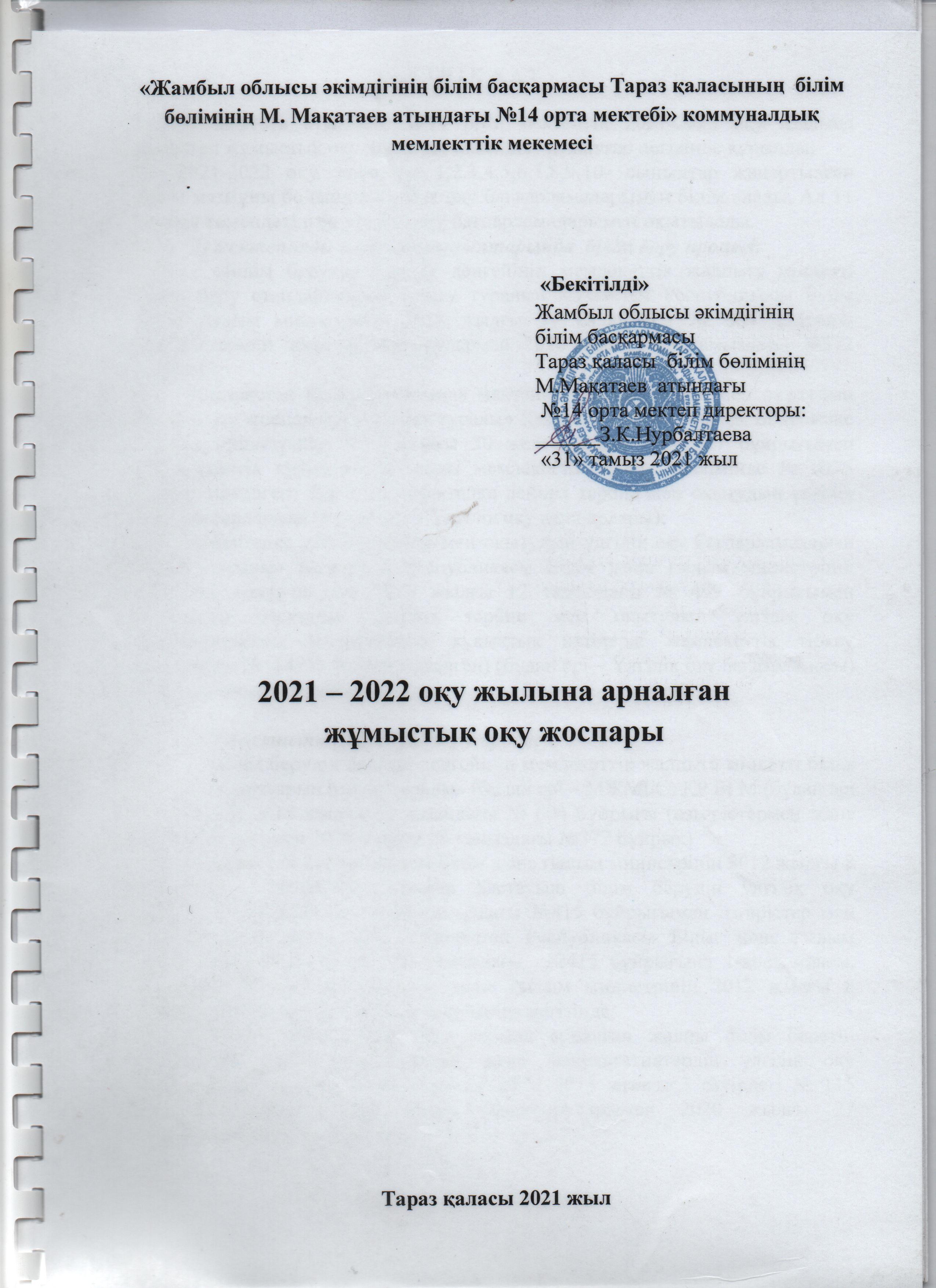 №14 мектеп жұмыс оқу жоспары 2021-2022оқу жылы
