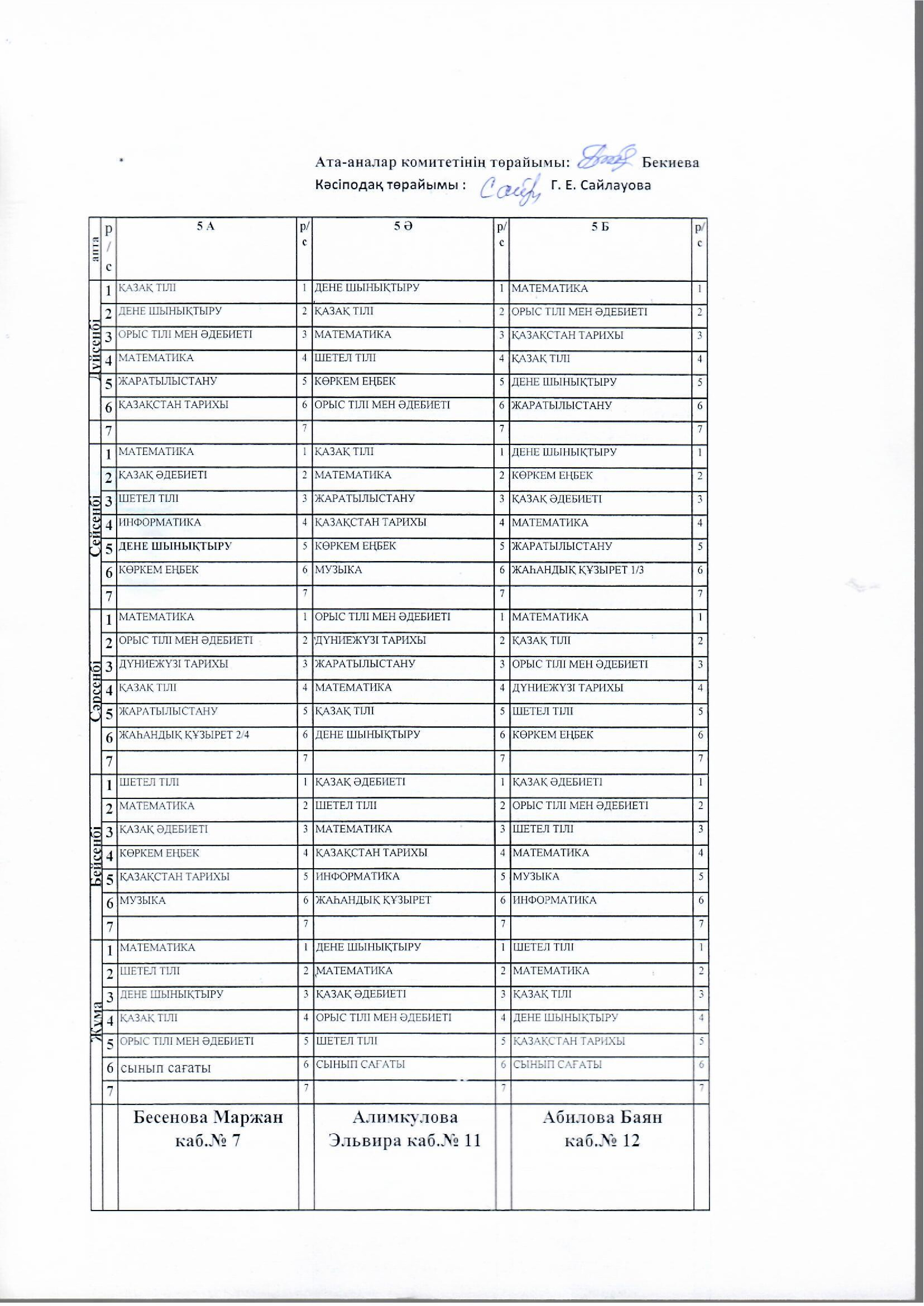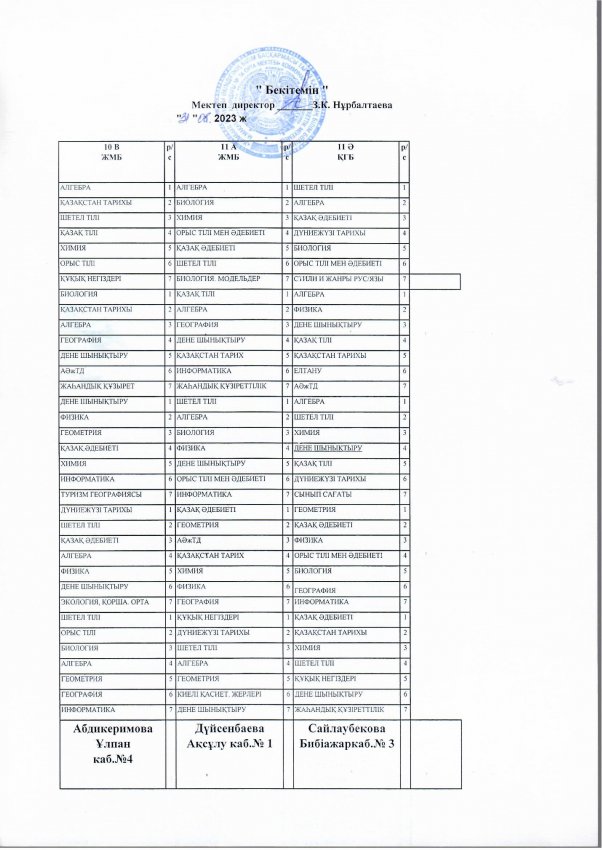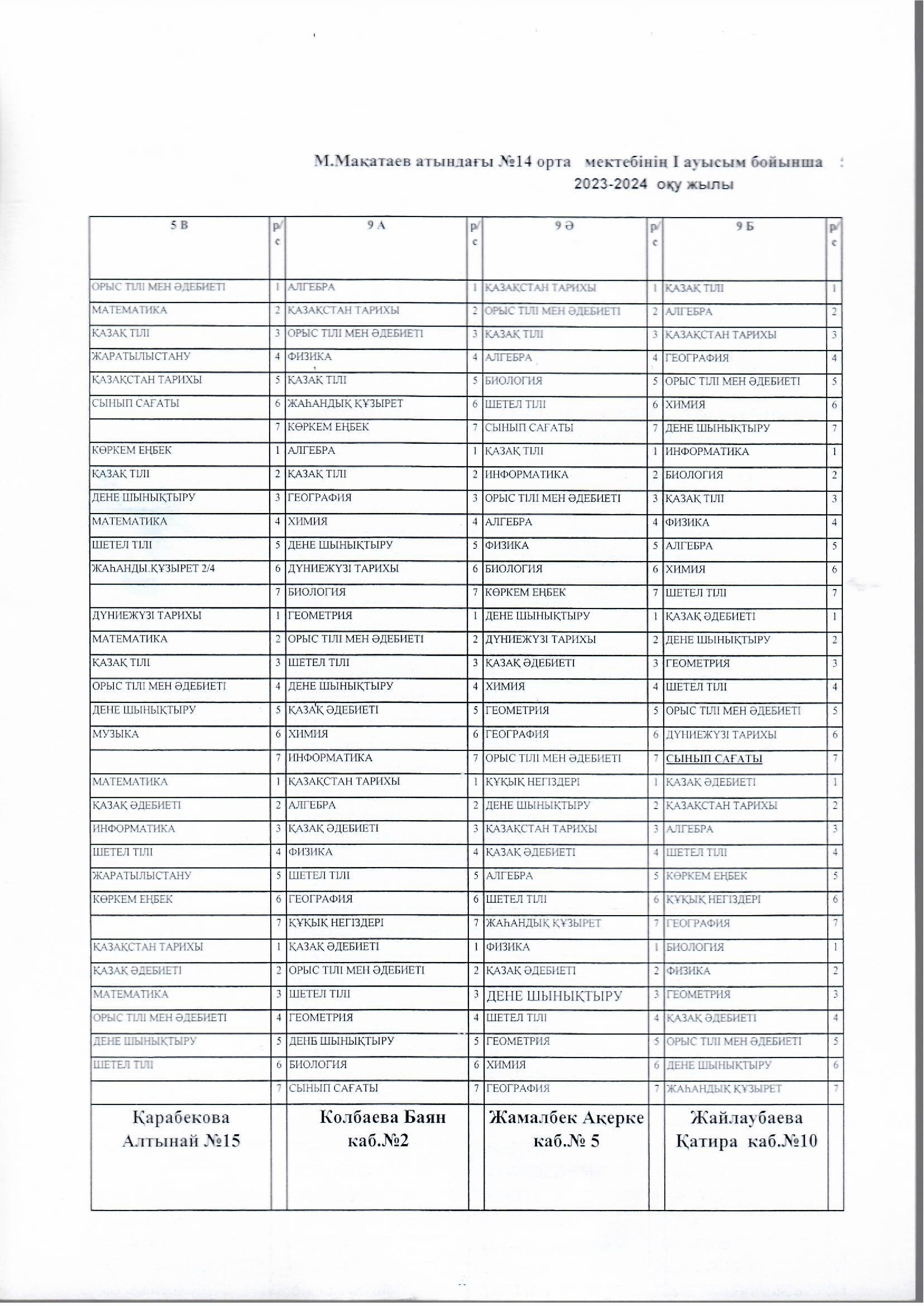 №14 мектеп сабақ кестесі. 2023-2024 оқу жыл. І ауысым