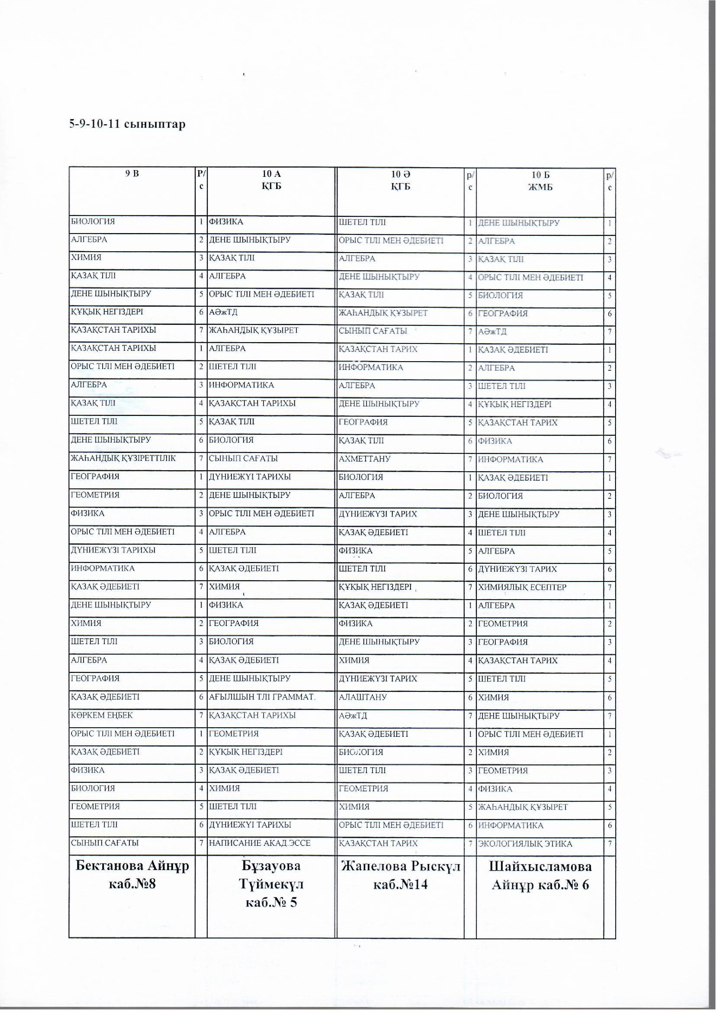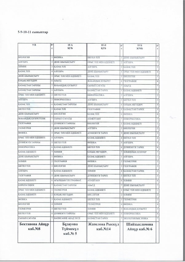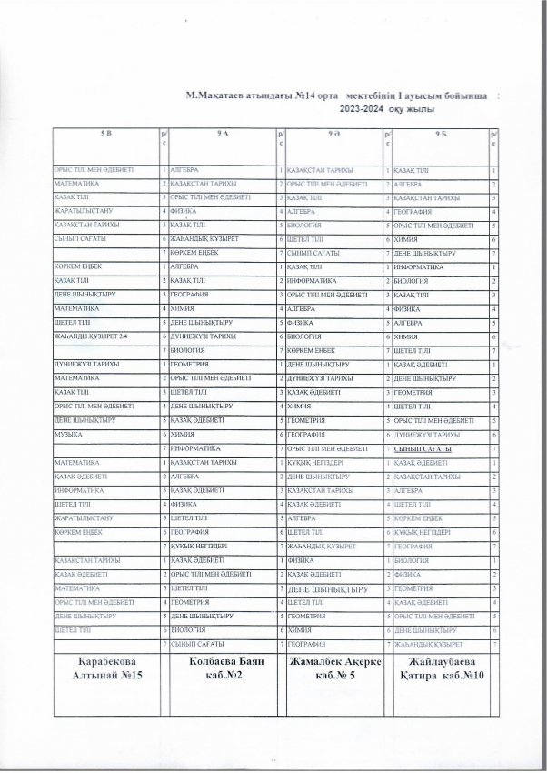 №14 мектеп сабақ кестесі. 2023-2024 оқу жыл. І ауысым » СШ №14