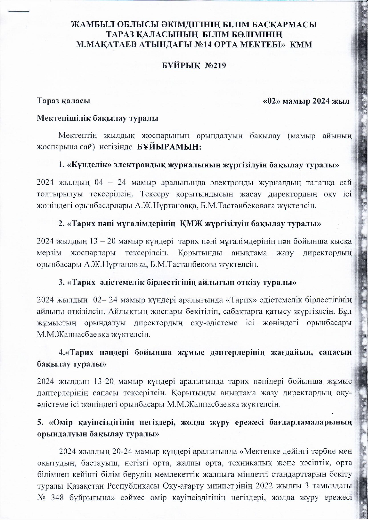 Мектепішілік бақылау. Мамыр айы 2023-2024 » СШ №14