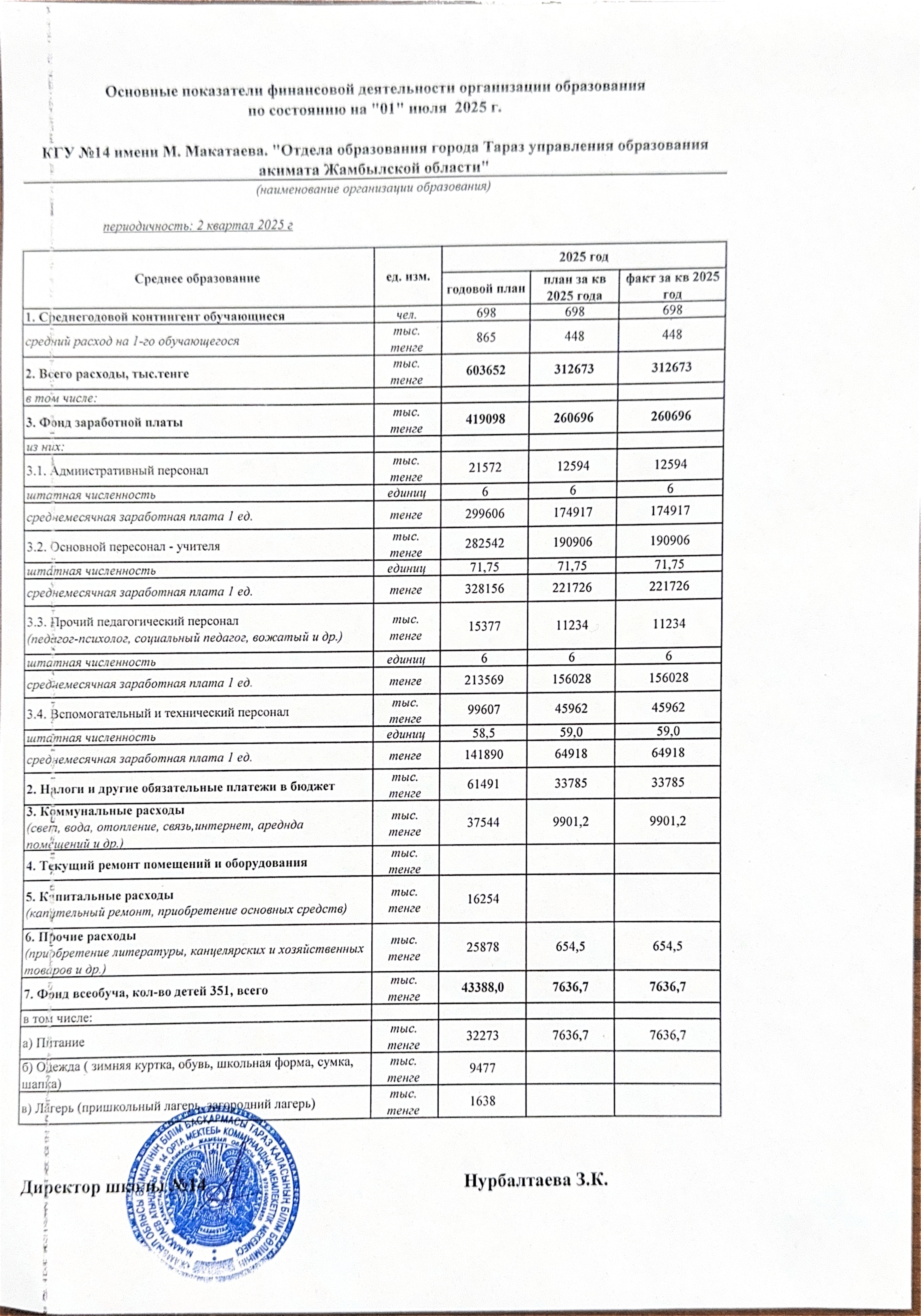 Қаржылық қызметтің негізгі көрсеткіштері » СШ №14