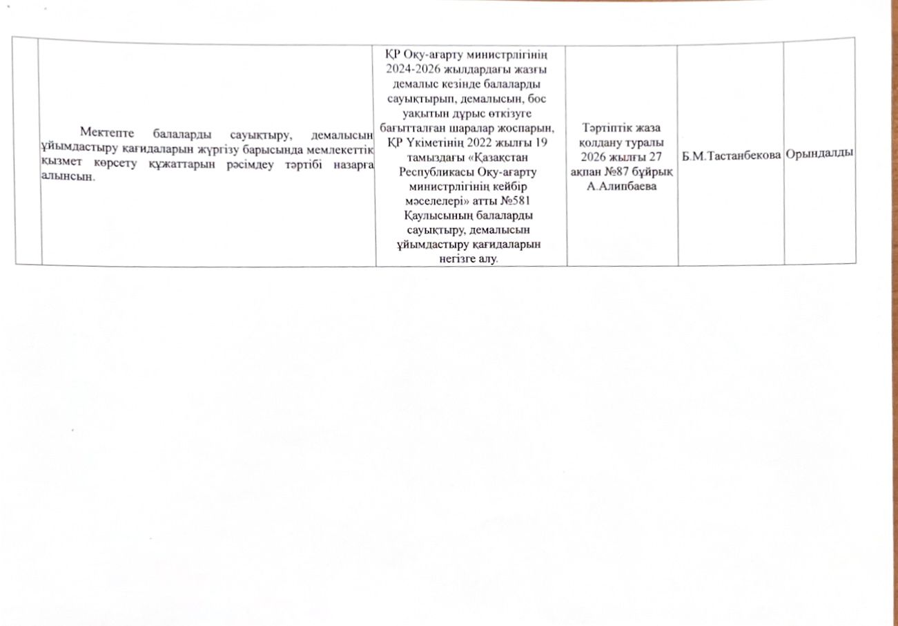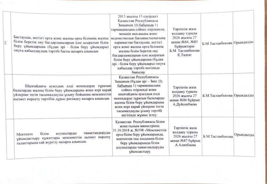 27 ақпан 2026 0 1 2 3 4 5 Сыбайлас жемқорлық тәуекелдерін ішкі талдау қорытындысы бойынша жою маниторингі